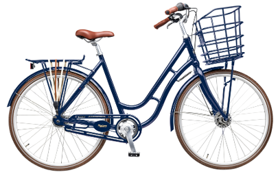 Fine detaljer som designskærm, bagagestropper og farvet kurv fuldender cyklens look og gør samtidig turen mere bekvem.