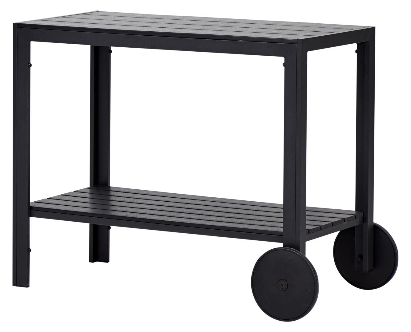 Denne serveringsvogn på 90x45x74cm er det perfekte grilltilbehør til din næste udendørs fest eller grillfest. Med masser af plads til at arrangere og servere dine grillede retter og drikkevarer, er denne vogn både praktisk og stilfuld. Lavet af holdbart materiale og med letløbende hjul, gør det nemt at flytte den rundt på terrassen eller i haven. Med denne serveringsvogn bliver det let og bekvemt at servere dine lækre grillretter til dine gæster .